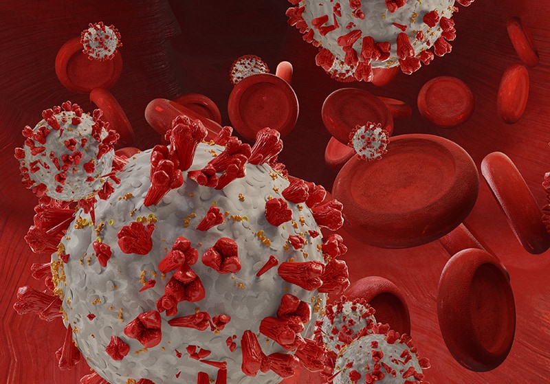 Изследователите откриват, че при инфектиране на клетката със SARS-CoV-2, вирусът причинител на COVID-19, нивото на протеин CD47 върху клетъчната повърхност се увеличава.